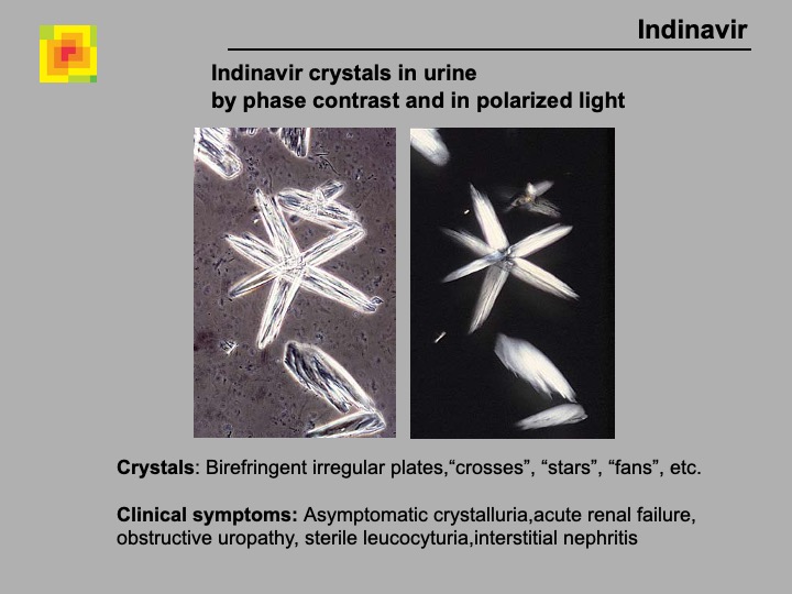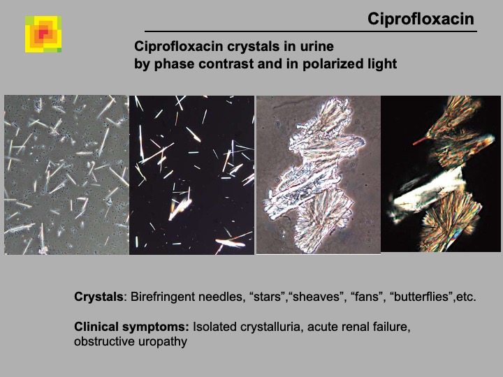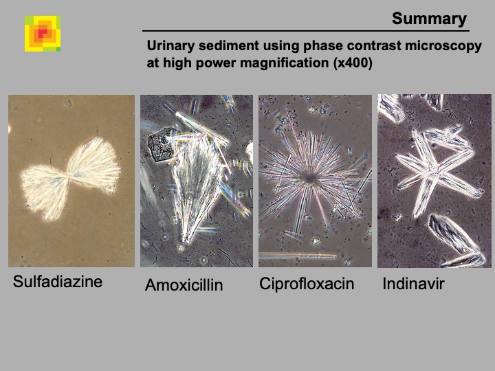 acetylsalicylic acid, aciclovir, amoxicillin, ampicillin, Ascorbic acid (vitamin c), incl. combinations, atazanavir*, cefalexin, ceftriaxone, ciprofloxacin, felbamate, Fluoroquinolones, foscarnet*, indinavir , methotrexate, naftidrofuryl, norfloxacin, orlistat, primidone, pyridoxal phosphate, sulfadiazine, sulfamethoxazole, triamtereneImages
